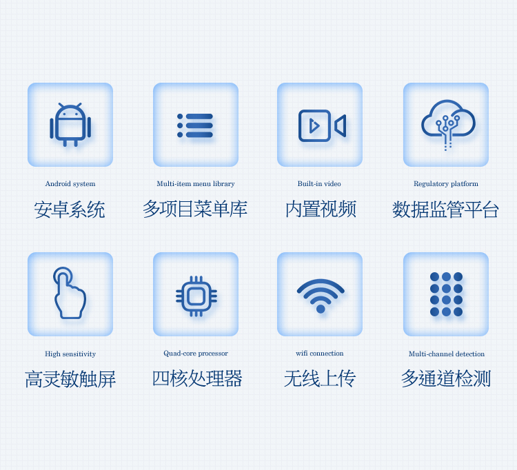 1、安卓智能操作系统,采用更加高效和人性化操作,仪器具有网线连接、wifi联网上传、GPRS无线远传功能,快速上传数据。