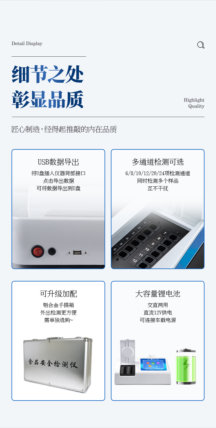 15、支持U盘存储。结果判定线可修改,对照值标定值可保存,断电不丢失数据。