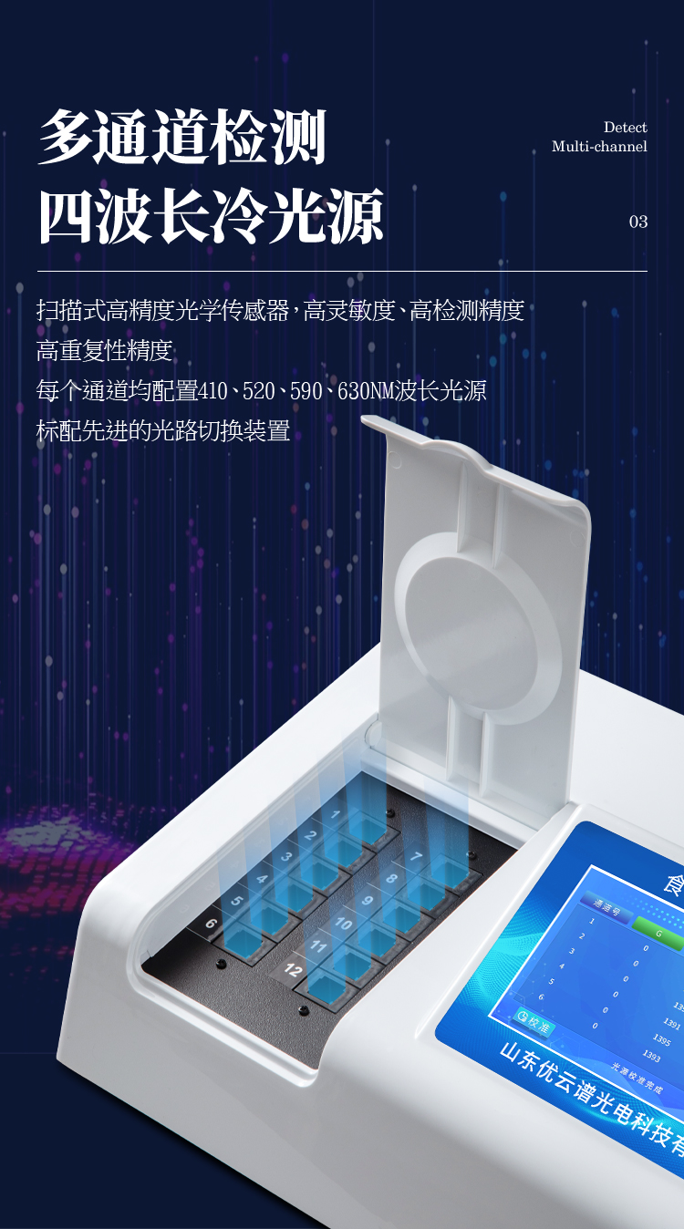 6、光源采用进口超高亮发光二极管,高精度、稳定性强、光源可控、可以关掉不使用的光源,功耗更低。