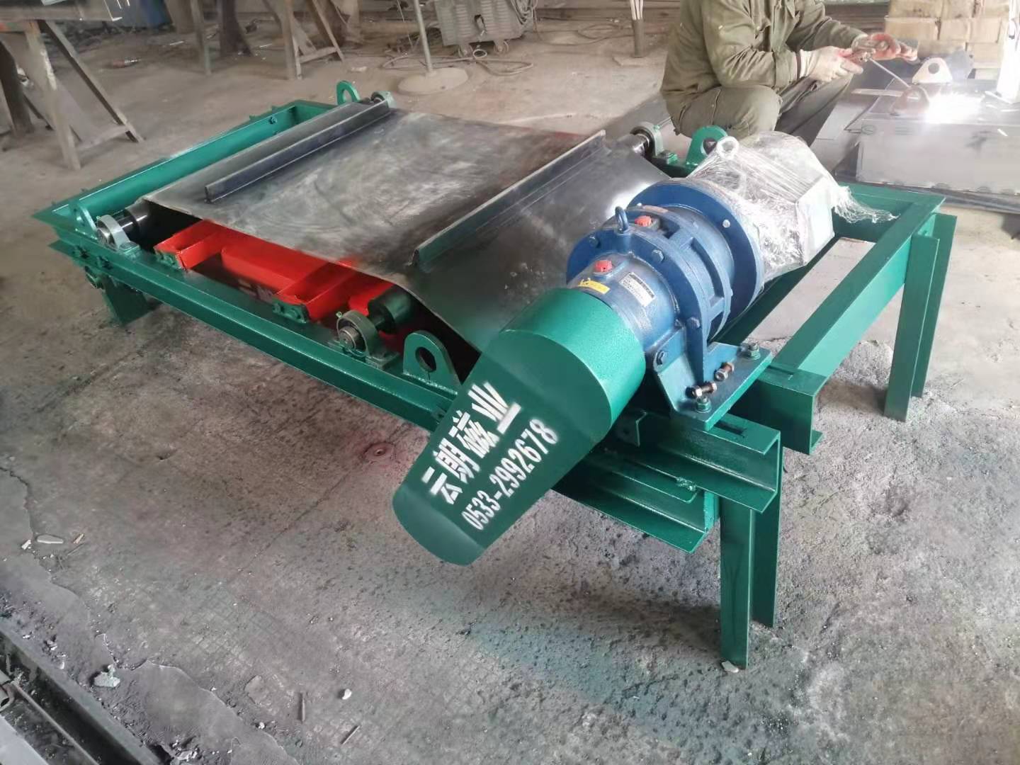 由高性能永磁磁芯、弃铁皮带、减速电机、框架、滚筒等部分组成,与各种输送机配套使用。用于从非磁性物料中自动清除0.1—35公斤重的铁磁性物质。其内部磁路采用计算机模拟设计、完善的双磁的结构,保障整机在恶劣环境中无故障长期运行。