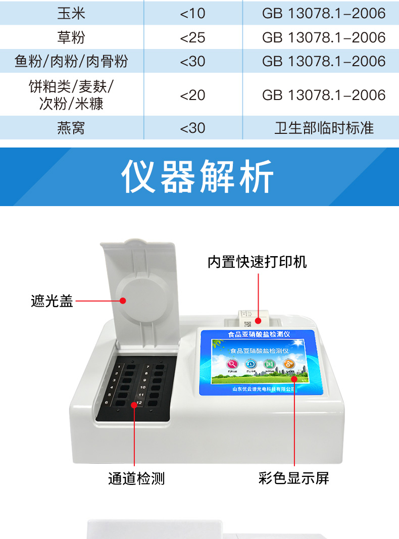 7、内置新国家限量标准,与所测结果进行现场比对,并持续更新标准。